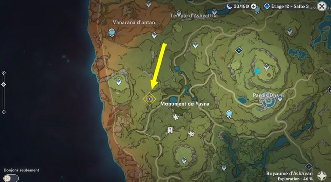 La première chose que vous devez faire est de vous rendre au Camp Eremite. Commencez la quête en approchant le Fatui et l’Eremite sur le camp du Monument de Yasna.