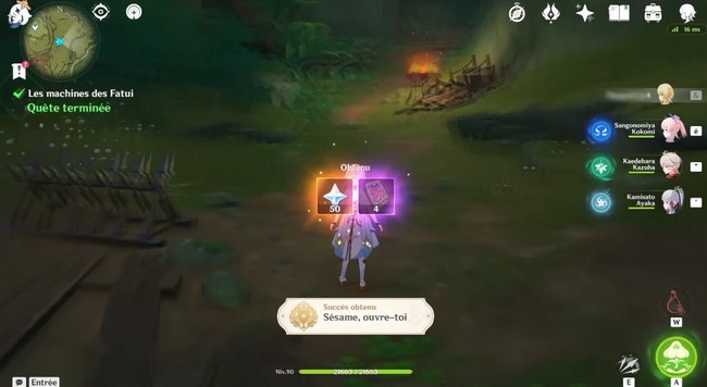 En terminant la quête, vous obtiendrez le succès caché « Sésame, ouvre-toi » qui vous donne 5 Primo-gemmes.