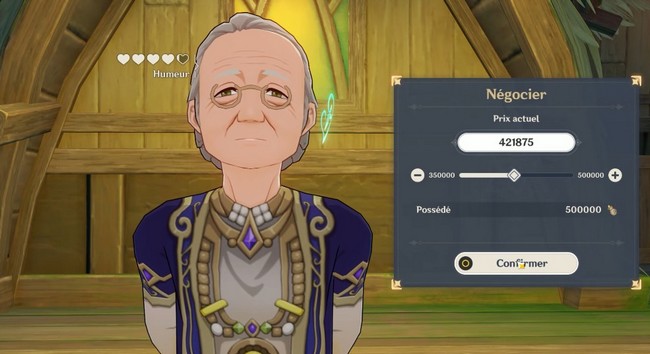 Vous devrez alors faire une offre. 420,000 semble trop bas. 464,000 ça marche. Dans tous les cas, ce n’est pas votre propre Mora. La quête se termine ici.