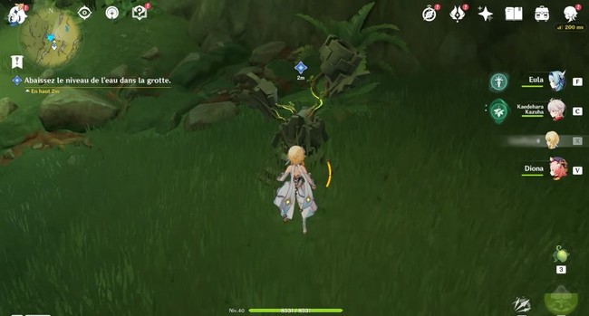 A l’intérieur de cette grotte, vous devez à nouveau faire baisser le niveau de l’eau. Utilisez le Kusava.
