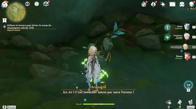 Vous devrez ensuite drainer l’eau plus loin pour obtenir le champignon. Utilisez le Kusava et ensuite l’attaque Dendro.