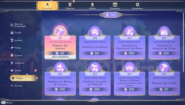Celles-ci sont accomplies en plusieurs étapes avec des objectifs cumulatifs de plus en plus importants à atteindre, votre progression étant indiquée par la barre qui se remplit à mesure que vous cochez chaque niveau. Les récompenses sont d’abord modestes, mais augmentent à chaque étape de la tâche accomplie, alors continuez à travailler pour atteindre vos objectifs et, au fil du temps, vous recevrez un flux pratique de Dreamlight.
