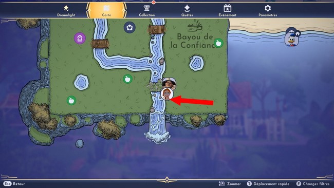 Votre destination pour cet objet est le Bayou de la Confiance, que vous avez probablement débloquée lors de quêtes précédentes.