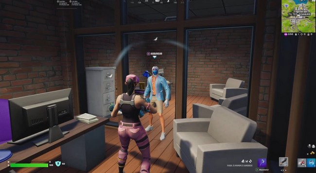 Assureur est le PNJ le plus difficile à trouver pour ce défi Fortnite, car il se cache au sommet d’une tour dans Tilted Towers.