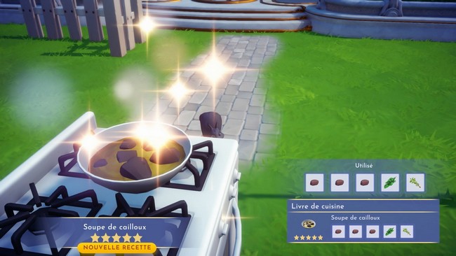 Après cela, vous devrez vous procurer quelques ingrédients pour cuisiner une soupe de cailloux, dont des morceaux de roche que vous trouverez près de l’endroit où se trouve Anna et qui sont marqués par des particules brillantes sur le sol.