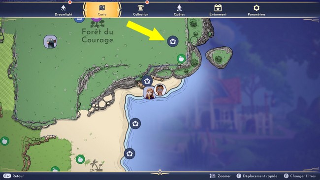 Et enfin, vous devez placer la Famille de Neige dans la forêt du courage, alors rendez-vous là-bas.