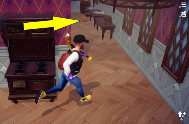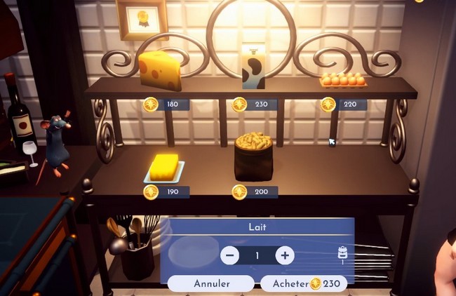 Enfin, vous devrez aller au restaurant de Rémy pour obtenir le beurre et l’oeuf. Une fois à l’intérieur du restaurant de Rémy, allez au fond sur le côté droit, où se trouve la cuisine, et interagissez avec les étagères à gauche du réfrigérateur.