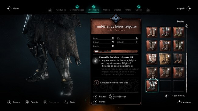 - Trésor :Les jambières de héros trépassé et le brassard de héros trépassé.