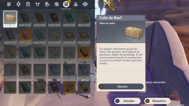 Pour débloquer la quête du monde « Fleurs sur les sables », vous devez d’abord terminer la quête d’Archon Chapitre 3 – Acte 4 « Le roi Deshret et les trois mages ».