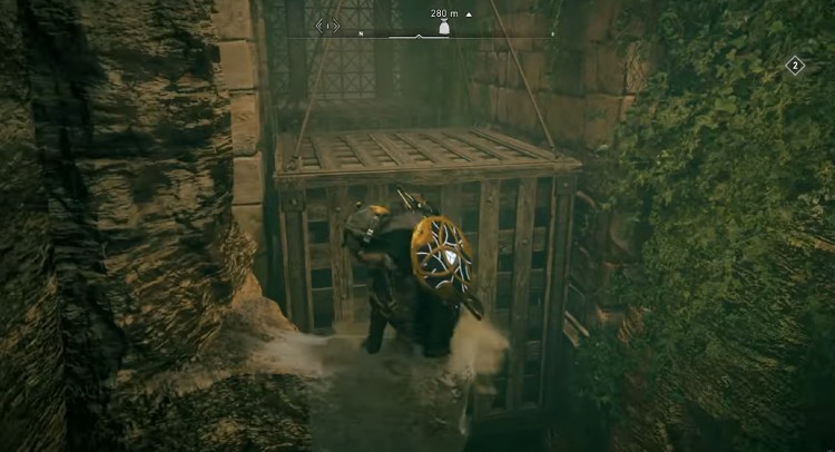 Faites demi-tour et sur votre gauche, vous verrez un mécanisme qui fera bouger une porte que vous devez franchir. Tournez cette roue et vous verrez la porte s’ouvrir au niveau inférieur.