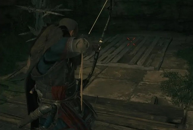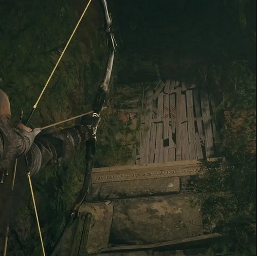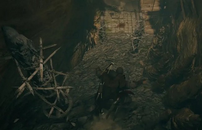 Grimpez sur les structures en bois pour atteindre l’endroit où se trouve la faible clôture en bois et cassez-la. Faites attention aux pointes qui sortent du sol devant la clôture.