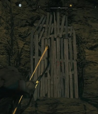 En faisant face au sud-est, trouvez la barrière en bois et brisez-la avec un coup de mêlée ou à distance.