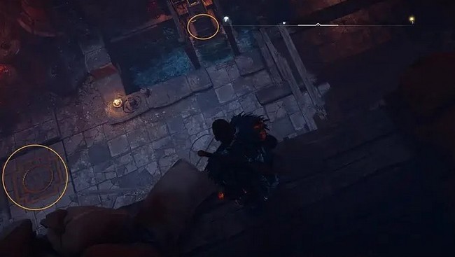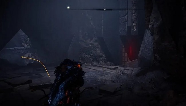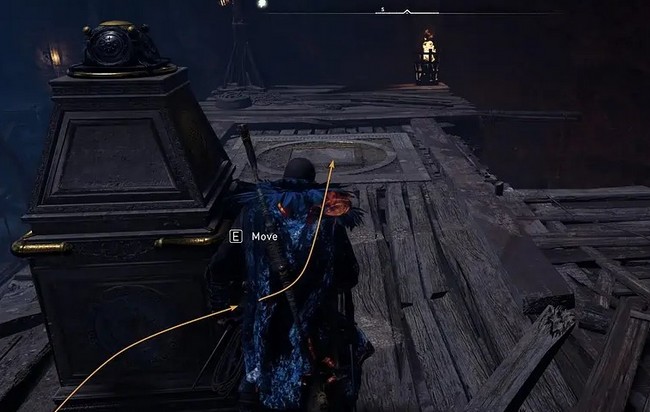 Il est temps de prendre le chemin suivant. Encore une fois, en partant de la grande tour au milieu de la grotte géante. Depuis le pont en bois menant à la porte principale du tombeau, regardez vers le sud-ouest et sautez en bas. Passez la porte. Sur sa droite, vous remarquerez le prochain carreau déclencheur que vous devez peupler d’un objet obélisque mobile.