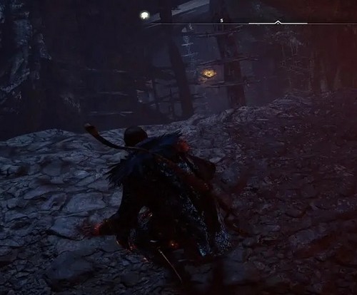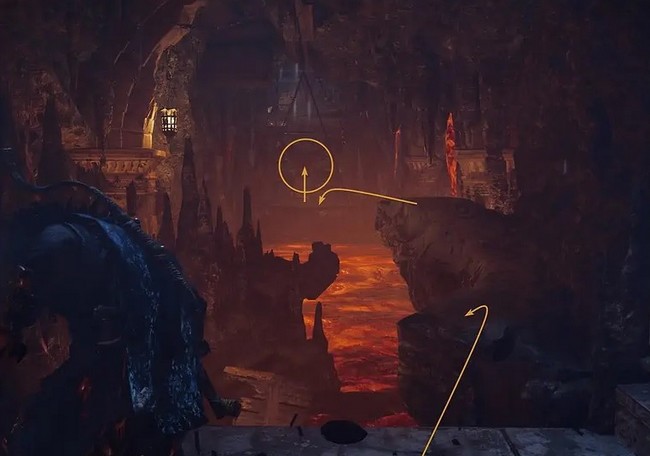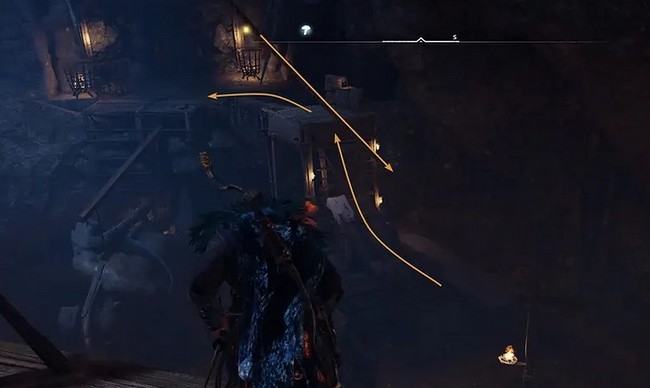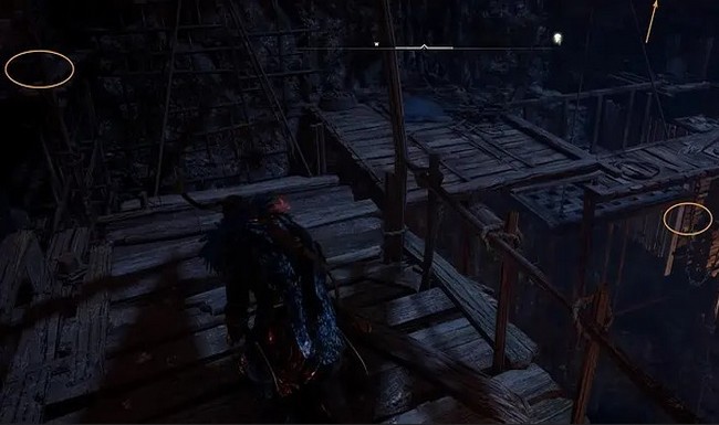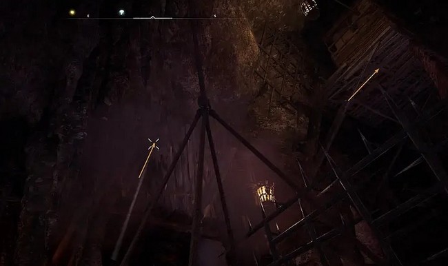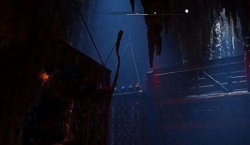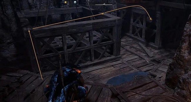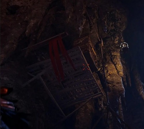 Au bout de ce chemin, vous vous trouverez dans une grande grotte. Très haute et large avec divers obstacles et structures. Prenez la corde pour atteindre la structure de la tour du milieu. Nous commencerons la partie la plus détaillée et la plus amusante de ce guide à partir de là. Marquez-le dans votre esprit comme un point de repère.