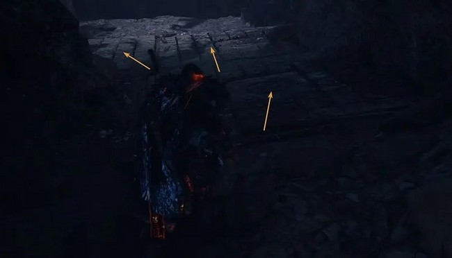 Au même endroit, prenez le chemin au nord et suivez-le jusqu’au trou dans le mur. Allez à la plate-forme avec le levier et tirez-le. Prenez la plateforme qui se présente à vous. Sur votre gauche, vous pouvez sauter pour ramasser un vase explosif. Ou vous pouvez utiliser une flèche incendiaire, si vous en avez. Le mur que vous devez faire sauter se trouve sur le côté droit.