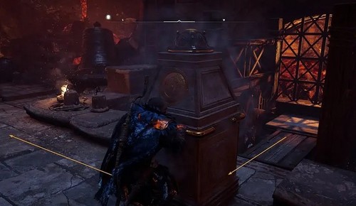 Depuis l’arche de pierre entre les deux plateformes, tenez-vous debout et tirez sur les mécanismes qui maintiennent le pont en place. Le mécanisme de droite est un peu plus difficile à atteindre, mais c’est possible.