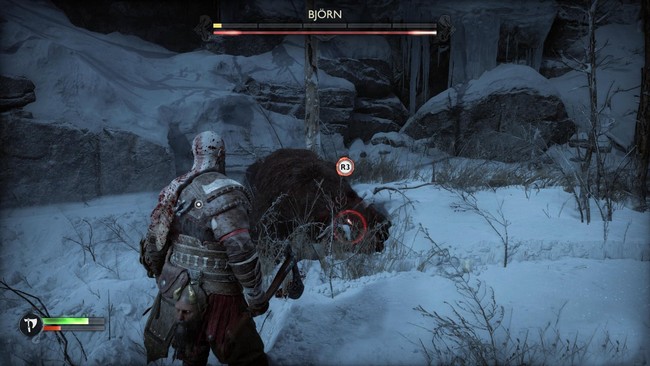 Bjorn est le premier vrai combat de boss du jeu, et en tant que tel, il est conçu pour marteler les techniques de combat de base que vous devrez maîtriser. Bjorn n’en reste pas moins une menace. Cet énorme ours est implacablement agressif, et le champ de bataille n’est pas si grand que cela, ce qui fait que vous pouvez facilement être poussé dans un coin avec peu d’espace pour bouger.
