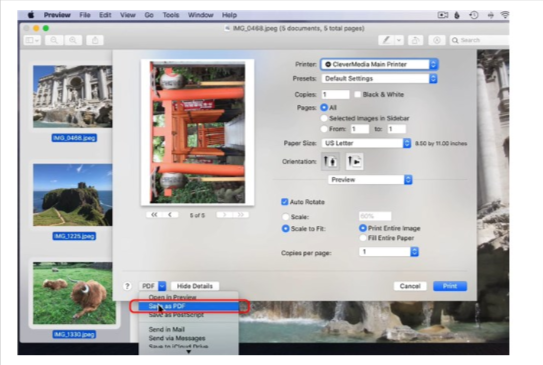 Pour éviter la situation désordonnée des images dans les fichiers PDF, vous pouvez y apporter des ajustements simples. Sélectionnez toutes les images JPG après avoir cliqué sur les vignettes dans la barre latérale cachée, puis cliquez sur le bouton Fichier > Imprimer dans le menu supérieur.