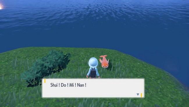 Comme d’habitude, vous recevrez un appel d’un Nigirigon lorsque vous approcherez. Cherchez le petit Pokémon poisson orange qui dit « Taitaaan ! » à l’extrémité sud de l’île sud-est :