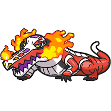 L’évolution de Chochodile en Flâmigator, aura six forces (insecte, Plante, glace, acier, Spectre et psy) et cinq faiblesses (Ténèbres, Spectre, sol, roche et eau).