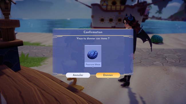 Enfin, apportez la fourrure bleue à Donald pour poursuivre la quête.