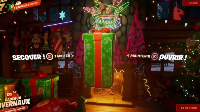 Pour obtenir le skin Adeline arctique dans Fortnite, rendez-vous au Chalet douillet et ouvrez la boîte verte avec un ruban rouge qui se trouve sur la pile de cadeaux de gauche de la pièce. Cependant, vous ne pourrez pas l’ouvrir le tout premier jour. C’est parce qu’il est prévu pour le 5ème ou 6ème jour, seulement si vous ouvrez les autres cadeaux systématiquement. En d’autres termes, le joueur devra ouvrir 4 autres cadeaux afin de débloquer le grand cadeau vert. Pour votre référence, nous avons joint une image ci-dessus comprenant l’ordre des quatre cadeaux que vous devez ouvrir en premier pour débloquer le 5ème.