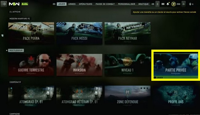 - Aller dans le menu multijoueur de Modern Warfare 2 .