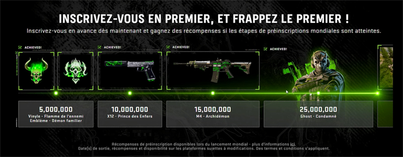 Inscrivez-vous en avance et gagnez des récompenses si les étapes de préinscriptions mondiales sont atteintes.