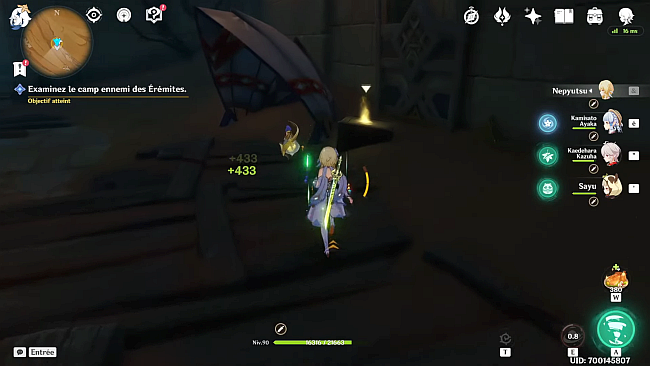 Vous atteindrez un canyon où les Eremites vous attaqueront. Il y a 3 endroits où vous devez examiner sur le camp des Eremites.