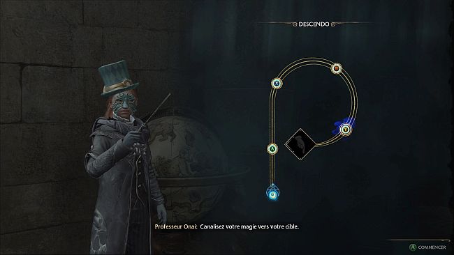 Pour compléter cette tâche, vous devez simplement retourner parler avec le Professeur Onai dans la salle de divination. Elle vous fournira le motif à tracer, qui ressemble à la lettre P. En le traçant avec succès, vous débloquerez le sort Descendo de l’héritage de Poudlard.