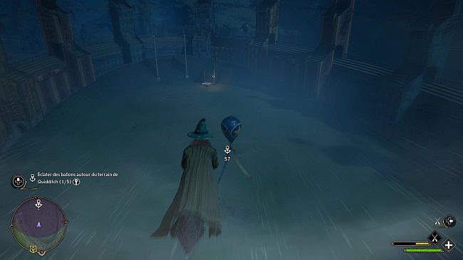 Dirigez-vous vers ces endroits et montez sur votre balai. Vous devriez voir ces gros ballons flotter dans l’air. Tout ce que vous devez faire, c’est les heurter avec votre personnage. Votre vitesse n’a pas d’importance : vous pouvez voler normalement ou utiliser votre rafale et tout ira bien puisqu’il n’y a pas de limite de temps.