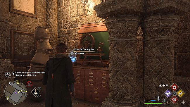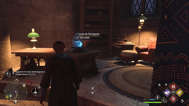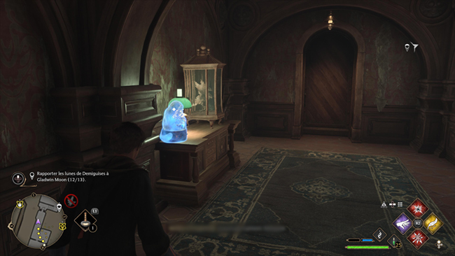 - Déverrouille la porte à l’aide d’Alohomora, et récupére la lune Demiguise sur la table à l’intérieur.
