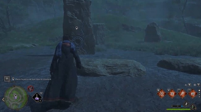 Quand vous partirez, vous serez téléporté à un autre endroit. Descendez du point de départ, puis grimpez sur la colline voisine à l’est. Après avoir escaladé deux corniches, dirigez-vous vers le pilier du milieu et placez la pierre de lune.