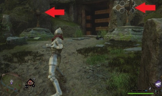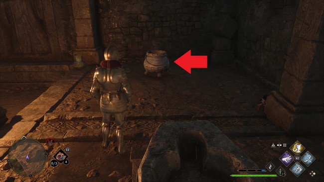 Allez au fond à gauche de la pièce et visez le pot sur le sol. Utilisez le sort de transformation pour le transformer en pièce d’échecs.
