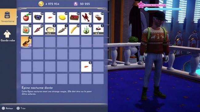 Le troisième emplacement de la pierre de métamorphose se trouve dans le Château des rêves ; rendez-vous en haut des escaliers vers la fontaine. Vous pouvez maintenant trouver la pierre sur le côté gauche de la rampe supérieure du balcon. Répétez les mêmes actions que précédemment pour transformer le crabe doré en Epine nocturne dorée.