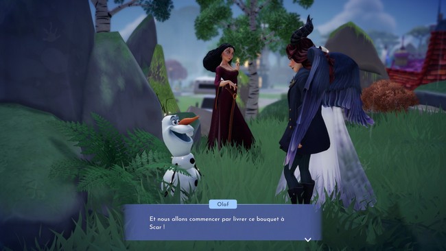 Ensuite, vous devez retourner voir Olaf. Mais pour une raison quelconque, il veut donner les saumons à Mère Gothel. Et vous, à votre tour, devez donner un bouquet de fleur fait par Olaf à Scar.