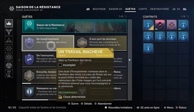 Comment terminer la quête un travail inachevé dans Destiny 2 saison 20 ?