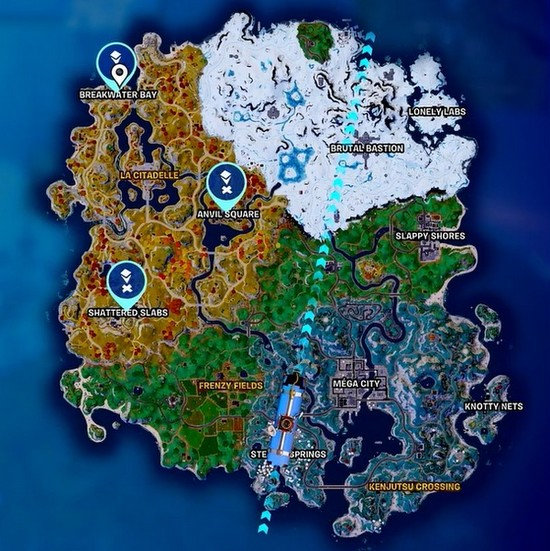 Comment Visiter Breakwater Bay, Anvil Square et Shattered Slabs dans Fortnite ?