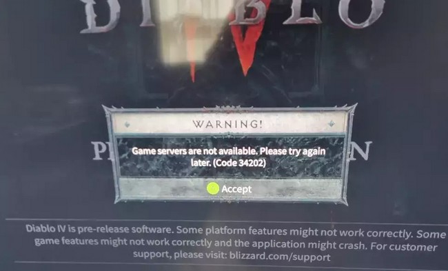 Il est possible que les serveurs soient interrompus de manière inattendue pour des raisons de maintenance. N’oubliez pas que la version bêta actuelle est susceptible de rencontrer des problèmes qui pourraient amener les joueurs à recevoir le code d’erreur 34202 de Diablo 4.