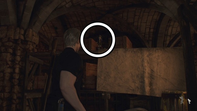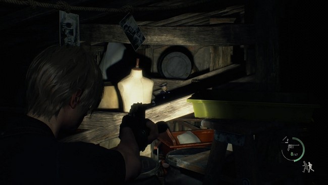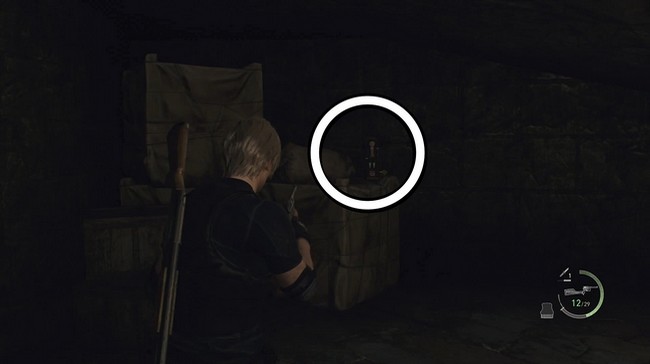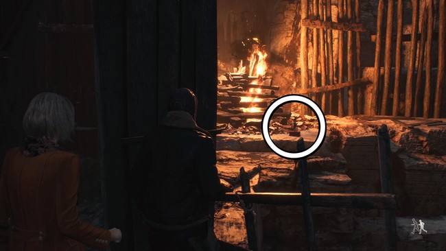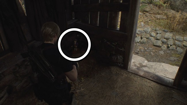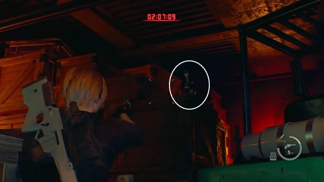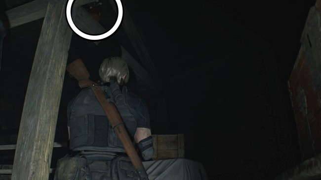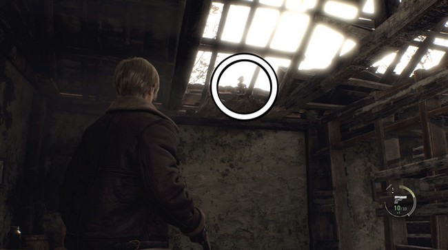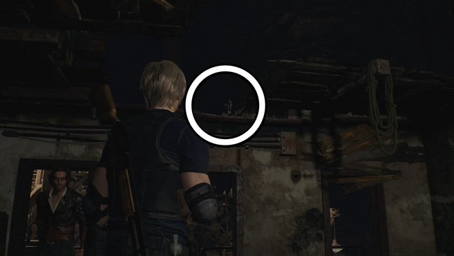 Le premier Châtelain Mécanique de Resident Evil 4 se trouve sur les chevrons d’une maison de Habitations lacustres. C’est la maison à l’ouest de la jetée en bois.