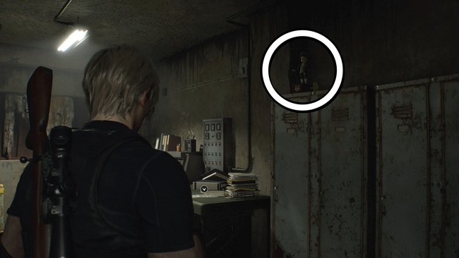 Sortez de la réserve d’ambre et prenez à droite vers le côté ouest du camping, où vous verrez cette poupée sur un casier, à l’intérieur d’une petite pièce.