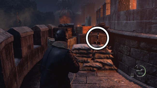 Vous pouvez trouver le huitième emplacement du Châtelain Mécanique dans Resident Evil 4 au sommet de la tour ouest des remparts du château, sur des sacs de sable, en bas de l’endroit où se trouve le coffre au trésor.