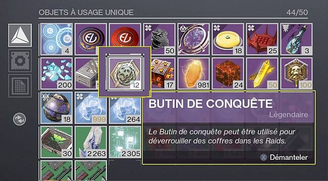 Le butin de conquête est une monnaie dans Destiny 2 qui ne peut être obtenue qu’en terminant des raids. Vous pouvez stocker jusqu’à 240 butins dans votre inventaire et les utiliser pour acheter divers butins de raid.