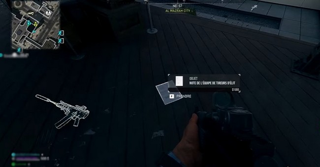 La première étape de la mission consiste à trouver les notes de l’équipe de tireurs d’élite qui se trouve dans la tour de la ville d’Al Mazrah, située dans la partie nord-est de la carte.