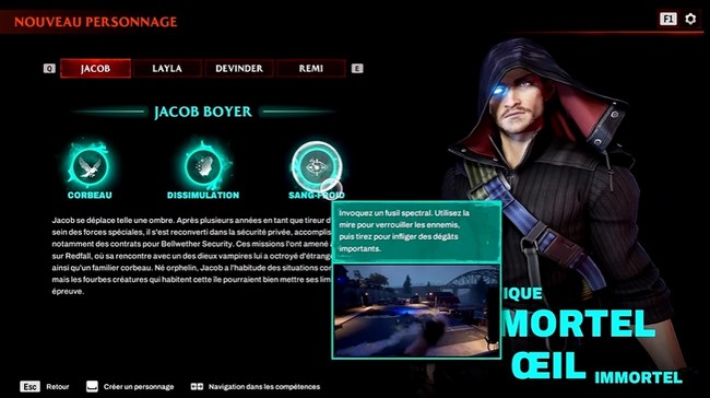 - Jacob : La classe « sniper », axée sur la furtivité, le repérage et les dégâts importants.