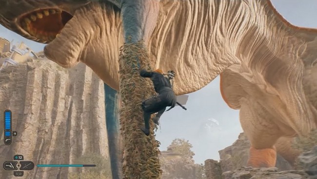 Vous remarquerez que l’une de ses défenses est recouverte de verdure. Sautez par-dessus et saisissez cette zone. Cela vous mènera à une nouvelle plateforme surélevée.