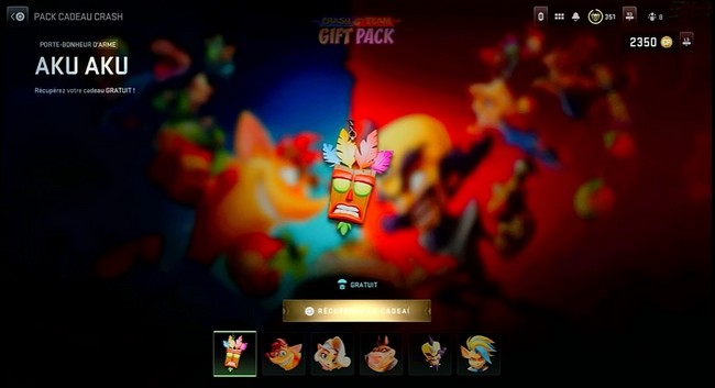 Les joueurs peuvent obtenir le Pack Cadeau Crash dans la boutique gratuitement pour une durée limitée. Il contient six objets différents représentant les visages des personnages les plus emblématiques du jeu.