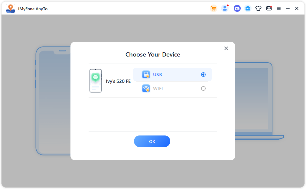 Étape 2. Connectez votre téléphone Android ou votre iPhone à l’ordinateur à l’aide d’un câble USB (pour la première connexion) ou du Wi-Fi.