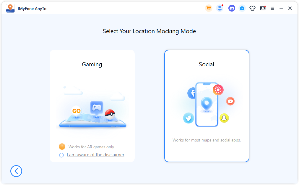 Étape 3. Sélectionnez Social parmi les 2 modes de simulation de localisation.