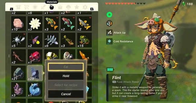 Pour faire un simple feu de camp dans Tears of the Kingdom, vous avez besoin de deux ingrédients : un silex et du bois. Le bois est facile à trouver, il suffit d’abattre quelques arbres. Le silex se trouve dans les grottes et le long des falaises, près des rochers brillants et cassants.